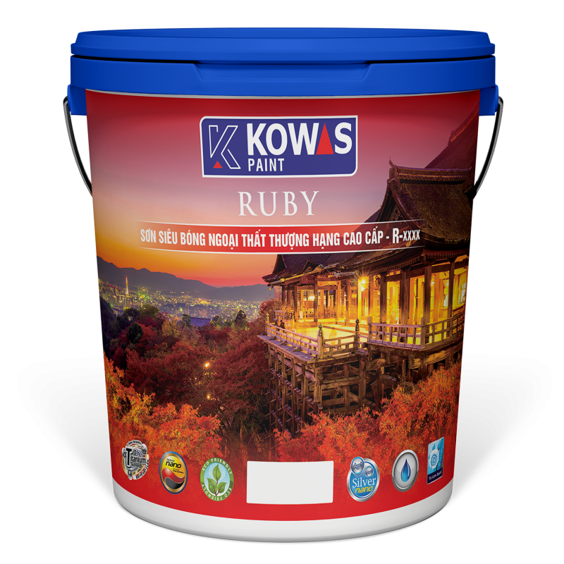 Sơn siêu bóng ngoại thất RUBY Là loại sơn nước Acrylic cho màng sơn siêu bóng và chai cứng. Được sử dụng trong nhà, ngoài nhà, phù hợp với khí hậu nhiệt đới gió mùa, chống nấm mốc hữu hiệu, chống bám bụi, chống thấm nước, chống nóng hiệu quả, chống tia cực tím, dễ sử dụng, đạt hiệu quả cao cho việc trang trí ngoại thất.